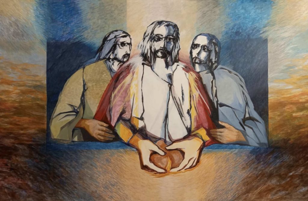 La recente Cena di Emmaus dipinta da fra Roberto Pasotti per la nuova residenza per anziani di Canobbio.