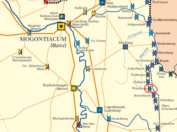 A difesa dei confini delle province della Germania superiore e della Rezia i Romani edificarono, a partire dal 69 d.C. sotto l’imperatore Vespasiano, una serie di fortificazioni – comprendente forti, fortini ausiliari (castella), torri, stazioni, palizzate e un vallo – lunga oltre 500 km, dal Reno fino al Danubio e conosciuta col nome di limes retico-germanico. Vent’anni fa, nel luglio 2005, l’UNESCO lo ha incluso nel patrimonio mondiale dell’umanità e oggi ampi tratti di questo limes sono percorribili. I siti archeologici di molti forti e fortini ausiliari lungo il tracciato sono stati resi accessibili al pubblico e taluni sono perfino stati interamente ricostruiti. L’esempio più importante è quello della Saalburg, situato nella regione collinare del Taunus, a nord-ovest di Francoforte sul Meno, ricostruito per volere dell’imperatore Guglielmo I a partire dal 1897.