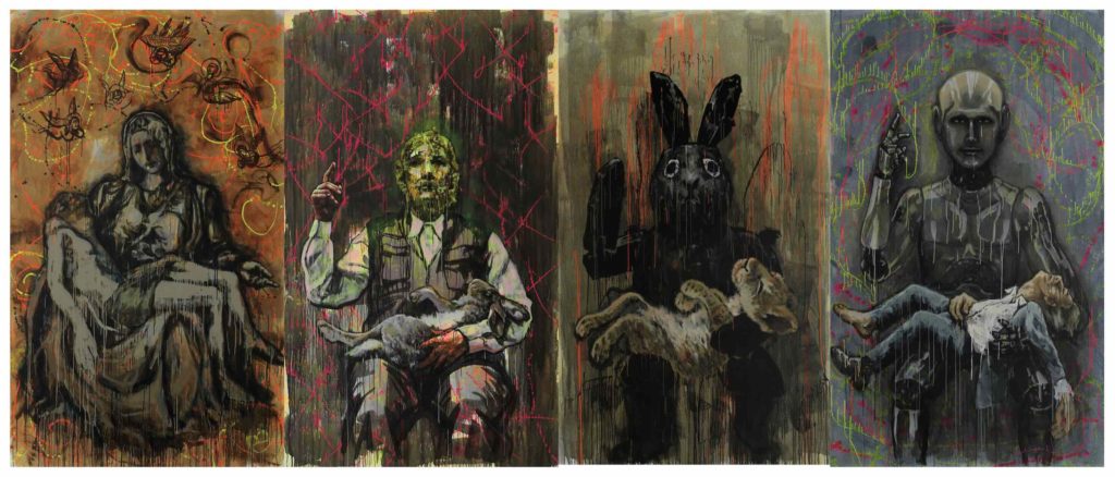 Con Seeing the Great in the Small il visitatore entra nel laboratorio dell’artista, tra schizzi e disegni che svelano l’origine del processo creativo. Nei Lace Paintings, invece, il pizzo si trasforma da semplice ornamento a simbolo di intimità e sensualità, indagando la delicatezza della soggettività femminile. Chiude il percorso No Island Ever Stands Alone, un’installazione scultorea che riflette sulla condizione umana in un mondo dominato dalla tecnologia e dalle incertezze globali: un invito a riconoscere la fragilità e l’interdipendenza dell’esistenza contemporanea.