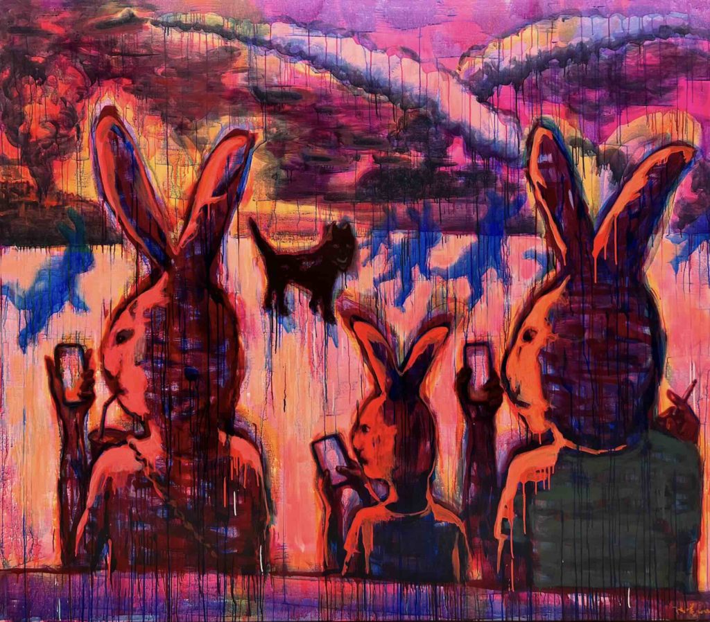 In Object Language gli oggetti diventano protagonisti silenziosi di una riflessione sulla memoria e sul significato delle cose. Segue Rabbit on the Run, cuore poetico della mostra, dove il coniglio – figura ricorrente nell’immaginario di Chen Xi – diventa metafora dell’esistenza umana, fragile e sfuggente, sempre in bilico tra leggerezza e inquietudine.