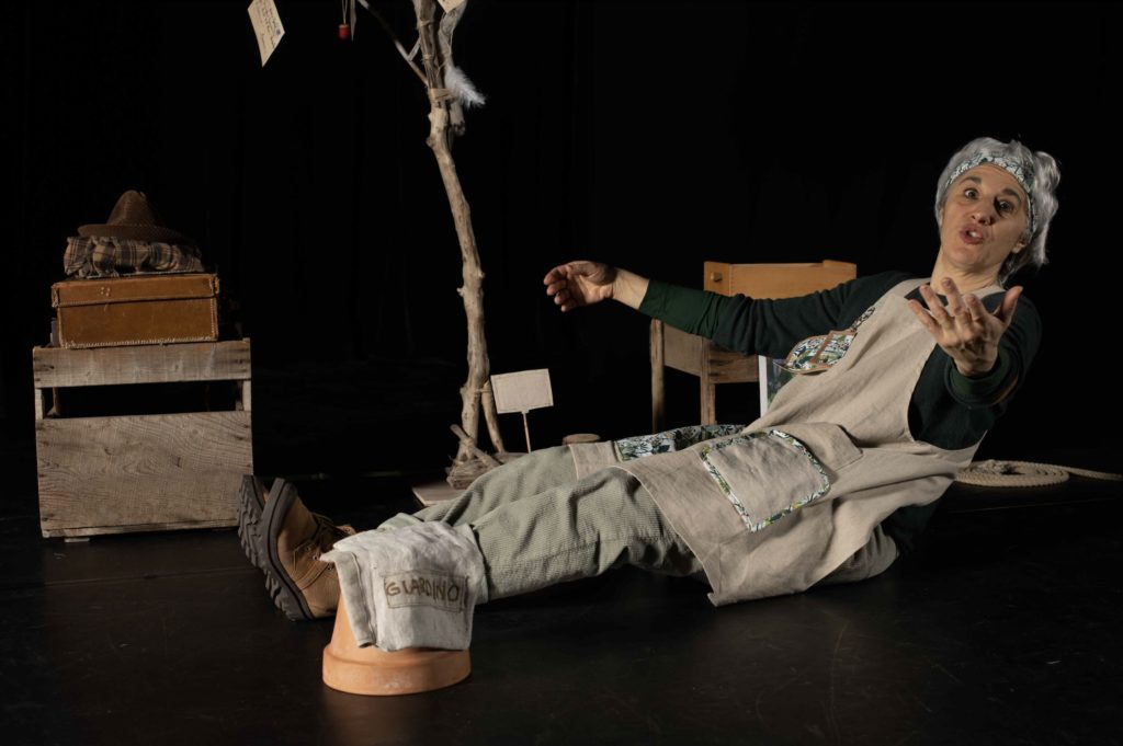 La giardiniera giramondo Alma, con storie, poesie e clownerie accompagna il giovane spettatore in un’esperienza immersiva e divertente nel mondo del teatro e della natura. Giardino si mostra come luogo di scoperta, gioco e ascolto dove piante, foglie e semi, si mescolano a parole e a suoni diventando storie. Gli elementi della natura ci portano in viaggio nel giardino del pittore Cuno Amiet, fra gli alberi del signor Gino e nella poesia di Emily Dickinson.