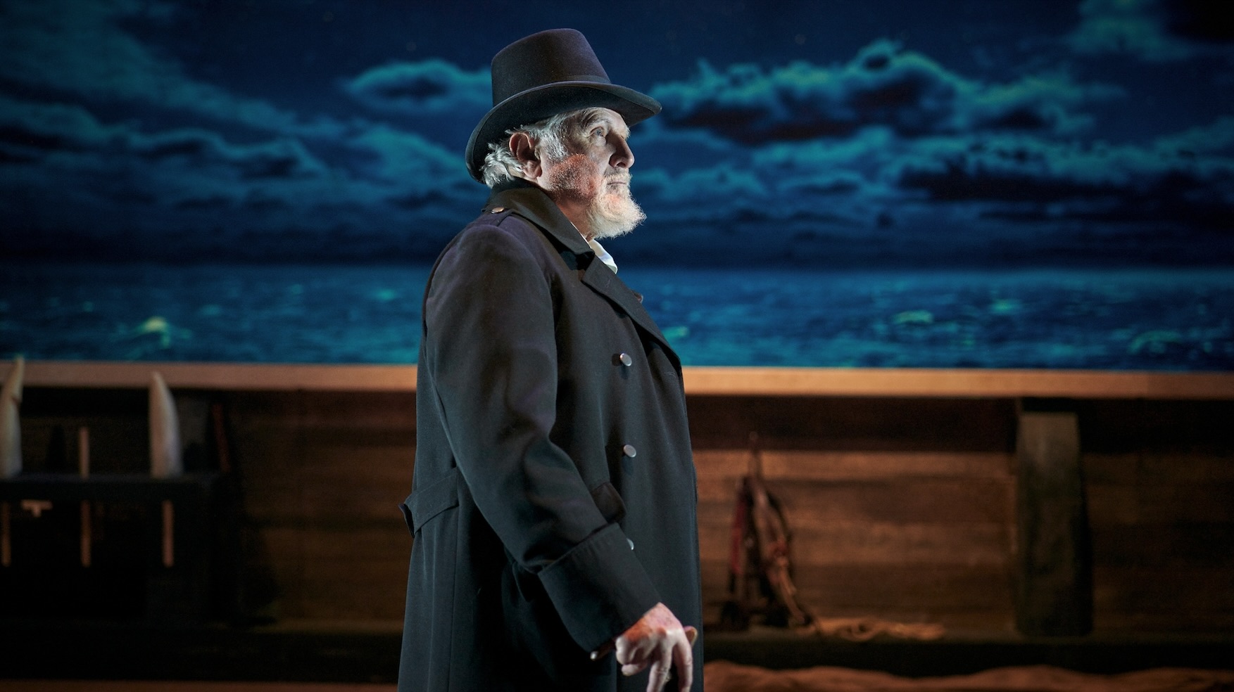 Il dialogo tra il mare e il marinaio è una traccia silenziosa che trova voce proprio nelle tempeste, soprattutto in quelle che hanno abitato la pagina di qualche autore affascinato dall’ambivalenza di una minaccia capace di cullare e distruggere. La discesa negli abissi tratta dal romanzo Moby Dick, il grande poema in prosa di Herman Melville, presenta un’avventura che è allo stesso tempo un’enciclopedia marinaresca e una tragedia tutta elisabettiana. Portare a teatro un’opera simile significa dover affrontare non tanto un testo, quanto un continente. E l’allestimento firmato da Guglielmo Ferro, con l’adattamento di Micaela Miano, accetta la sfida non riducendo, ma concentrando: non illustrando il mare, bensì evocandone l’ossessione. Al centro della scena si staglia la figura del grande attore e regista Moni Ovadia, che di questo Moby Dick, in scena al teatro Carcano di Milano fino all’8 marzo, è interprete e anima creativa.