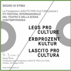 Il 22 giugno, presso la Berner Generationenhaus a Berna, il FIT Festival Internazionale del Teatro e della scena contemporanea è stato premiato dalla Stiftung Erbprozent Kultur/Legs Pro Culture/Lascito Pro Cultura. Questo riconoscimento, consegnato dalla presidente Margrit Bürer e dai curatori Martin Handschin, Laura Hilti e Isabelle Vuong, celebra l’impegno e la capacità di resistenza del festival e del suo team, guidato da Paola Tripoli insieme a Katia Gandolfi e Belma Dizdarevic de Marchi. La fondazione ha voluto onorare l’impegno del FIT nella creazione contemporanea e la cura delle tematiche artistiche e socio-politiche, auspicando che il festival continui ad essere un precursore nel futuro.