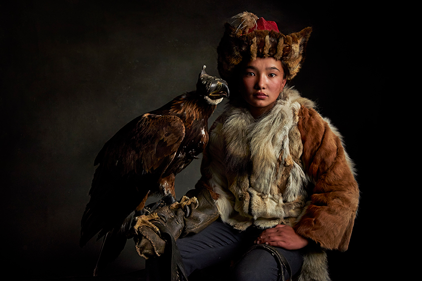 Dalle pianure ghiacciate della Siberia, il viaggio fotografico di Meniconzi si spinge poi verso sud, ai piedi dei monti Altai, nella Mongolia occidentale. Qui vivono i Berkutchi, i cacciatori con l’aquila reale, che da secoli si spostano con le stagioni alla ricerca di pascoli. Nella provincia di Bayan-Ölgii, l’allevamento di cavalli, pecore, capre e cammelli scandisce la vita quotidiana delle famiglie nomadi. Ma è la figura del cacciatore con l’aquila a catturare l’immaginazione. Il legame tra l’uomo e il rapace nasce da un’antica alleanza: l’aquila, con la sua forza, la sua vista e il suo coraggio, diventa una compagna di vita. L’addestramento richiede anni di pazienza e dedizione; solo conquistando la fiducia dell’animale si può creare un rapporto di rispetto reciproco. La caccia con l’aquila non è solo un atto di sopravvivenza, ma un rito che celebra l’armonia tra l’uomo e la natura, tra forza e grazia, tra cielo e terra. Oggi questa tradizione secolare si rinnova: anche le donne stanno conquistando un ruolo nell’antica arte di addestrare aquile per la caccia sugli Altai.