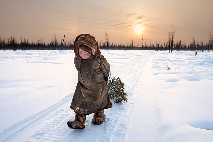 Nella Siberia occidentale, dove l’inverno dura nove mesi e il silenzio è rotto solo dal passo leggero delle renne, vivono i Nenets. Il loro mondo è fatto di distese bianche e di ritmi antichi, di tende di pelle e di lunghi spostamenti attraverso la tundra. La loro sopravvivenza è una forma d’arte che si tramanda da secoli: ogni gesto, ogni scelta, ogni oggetto racconta una conoscenza profonda del territorio e una relazione spirituale con gli animali che lo abitano. La renna è il centro del loro universo: fonte di cibo, trasporto, vestiario e rifugio. Le tende coniche di pelle, chiamate chum, si montano e si smontano con il ritmo delle migrazioni, seguendo le stagioni e i movimenti delle mandrie. Tutto è parte di un ciclo naturale che i Nenets rispettano e conoscono intimamente. Persino l’oscurità totale del Kaamos, l’inverno senza sole, diventa parte di una vita che non conosce l’opposizione tra uomo e natura, ma solo un continuo dialogo. Oggi però questo equilibrio è messo alla prova: il riscaldamento globale e l’espansione industriale minacciano le rotte migratorie e le risorse del territorio. Eppure, finché le loro renne continueranno a tracciare sentieri nella neve, i Nenets rimarranno testimoni di un modo di esistere che sfida il tempo e la modernità.